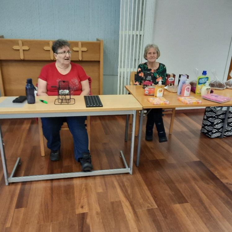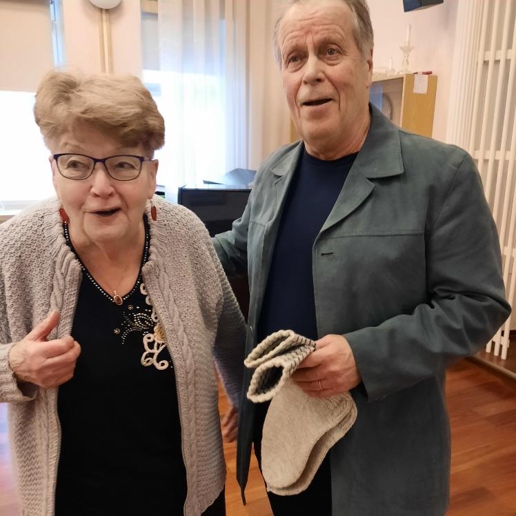 Jorma Mäkelä toimi onnettarena ja Riitta Backman voitti lahjakortin.