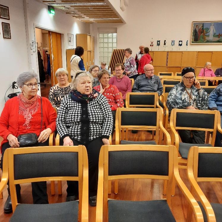 Sirkka Aropelto kertoi jumpasta, tanhusta ja kantrista. Onnistuvat , jos osaa kävellä. Hän myös piti meille pienen tuolijumpan.